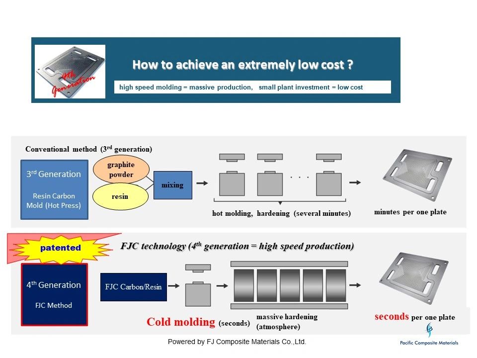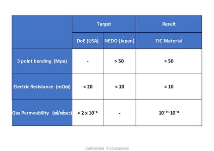 ・We prepare a fuel cell bipolar plate which satisfies US DOE standard target values. by blending graphite and thermosetting resin by our own manufacturing method
